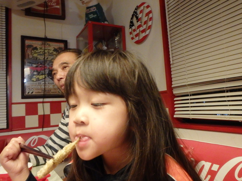 さっさと食べ終わったREAは外のベンチが気に入ってここで落ち着く