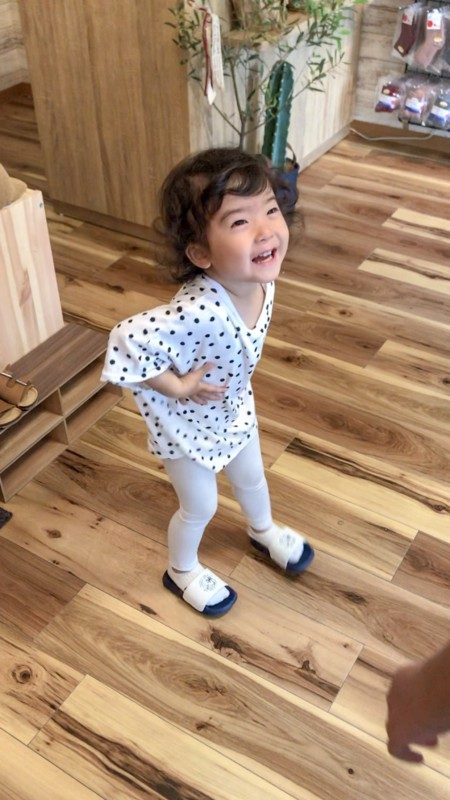 ユズちゃんもお揃いコーデの水玉かわいい~♪