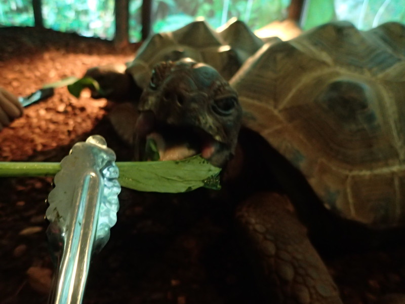 カメにチンゲンサイをあげられるコーナーがありました