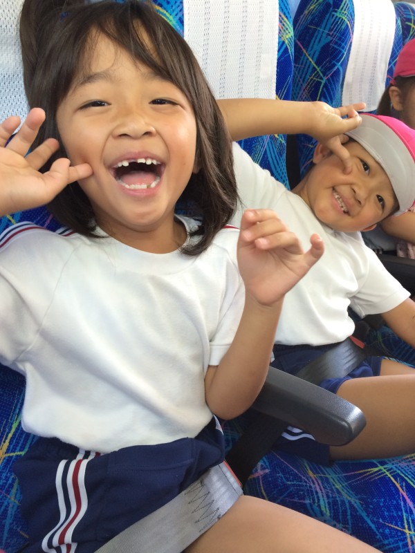 バスに乗り込みルンルンの二人