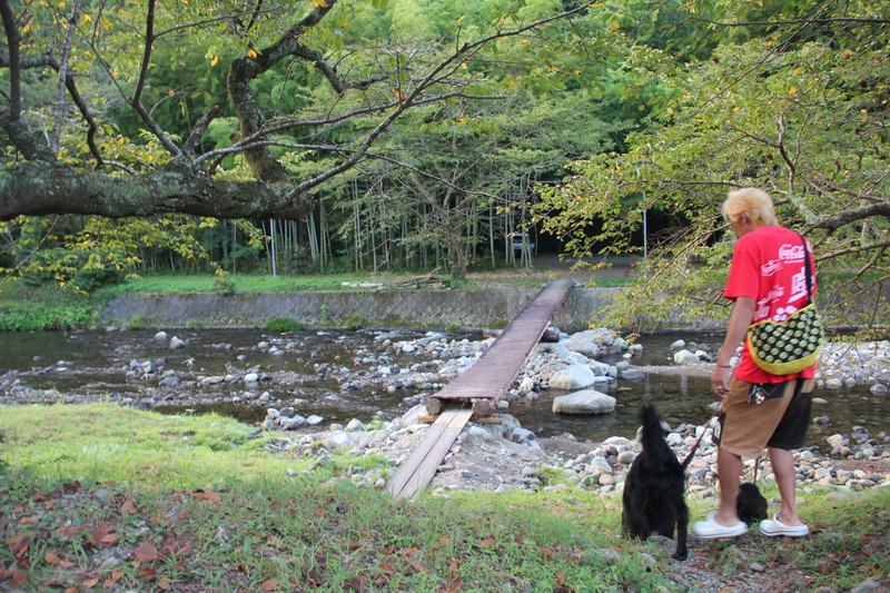 川の向こう見ると小さな橋が架かっていることを発見