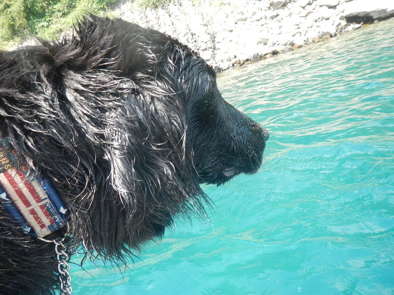 好奇心旺盛なLUNAはライフジャケット着てるので泳いで見たい様子