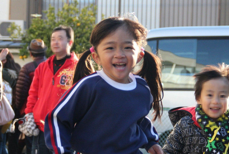 お遊戯会の前園庭でほかのお友達と一緒に遊んでる時の顔