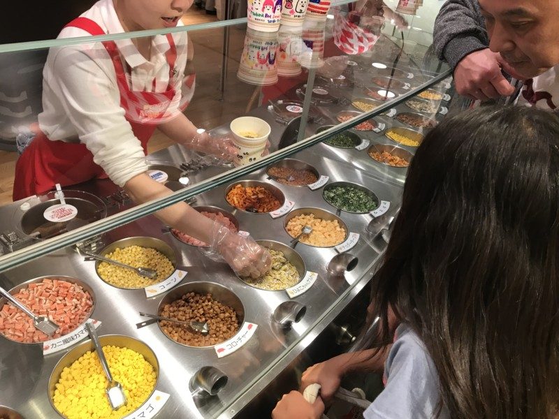 たくさん種類のある具から4種類選んで入れてもらいます