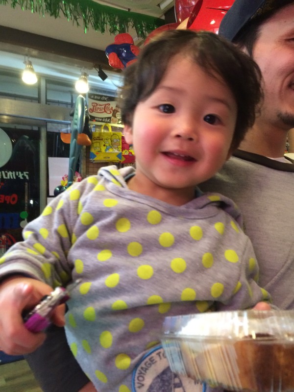 夜のお出かけの前に~~セサミバーガー買いに来てくれました(☆-v-)。