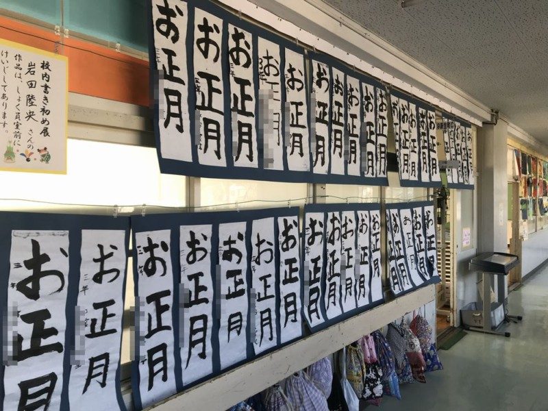 みんなの書き初めが飾ってあります