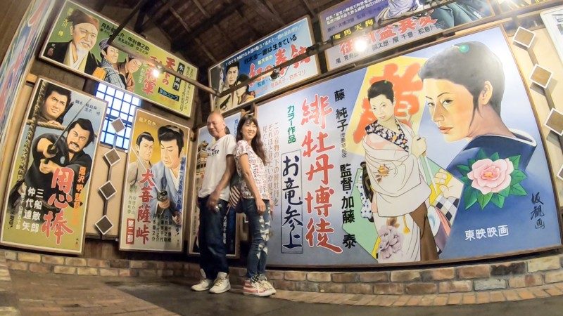映画ポスターの前で懐かしむ