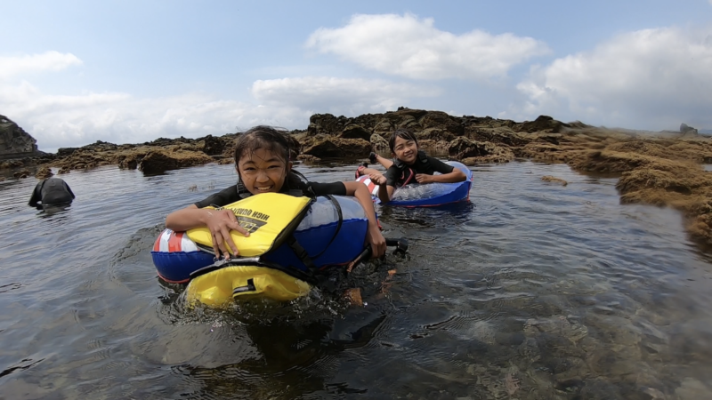 浅いところで水中眼鏡取って一休みすると