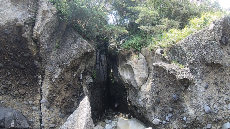 ここ恵比寿島には大古の噴火の火山灰・石からできてる地層が