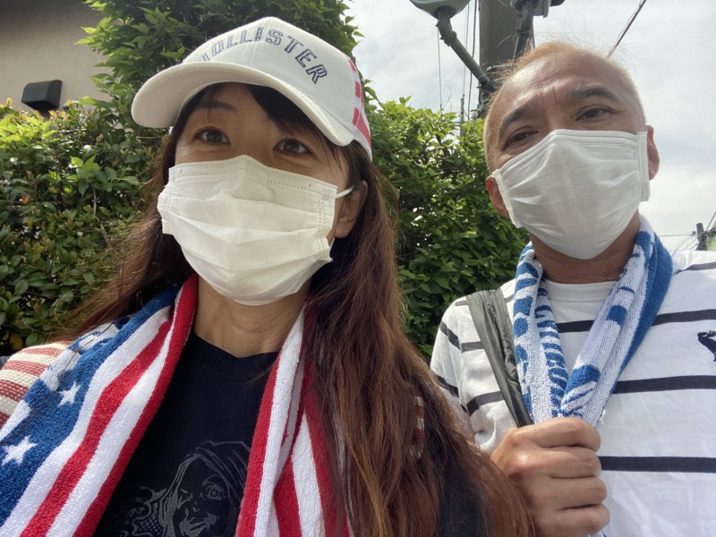 タオルと水筒、リュックで本気モード!