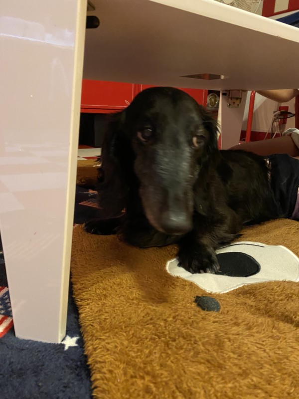 出されたテーブルの下が居心地がいいらしい(笑)