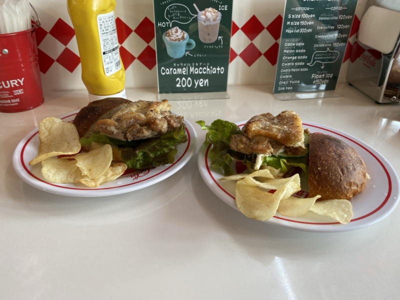 チキンバーガー!半分に分けて食べちゃおう~♥