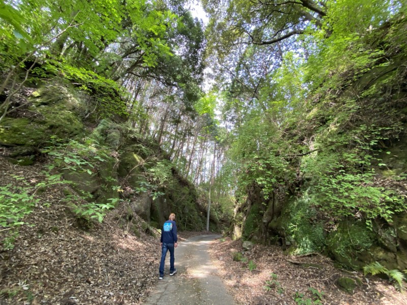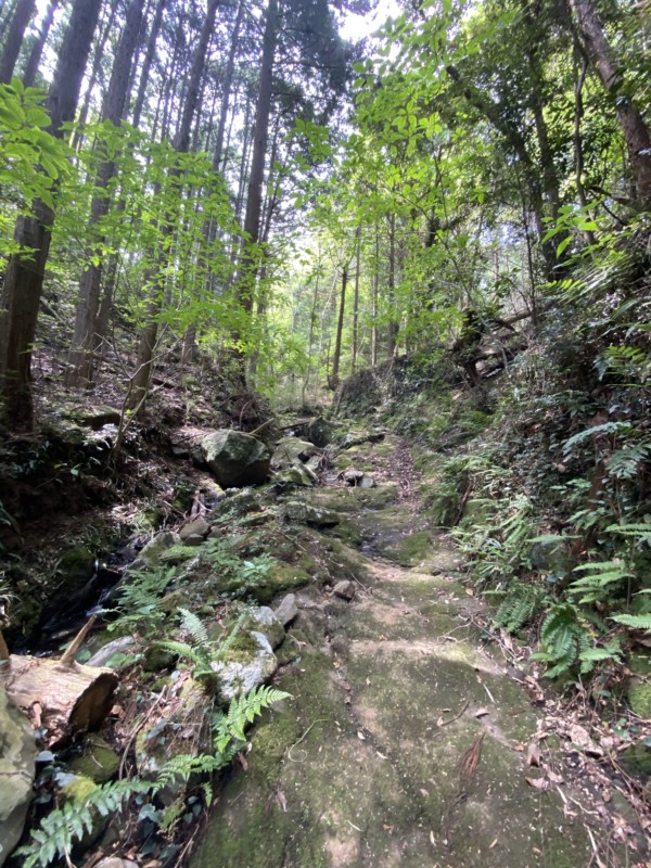岩に苔が生えてるでこぼこ道