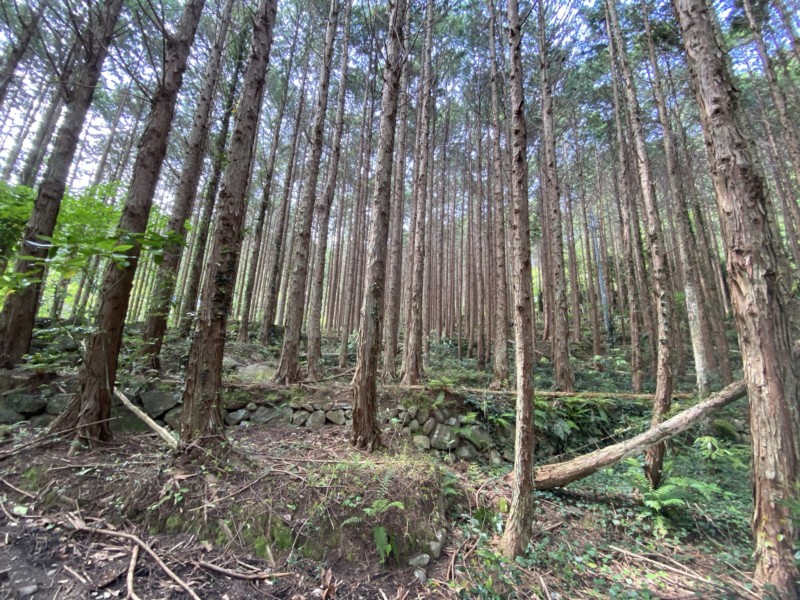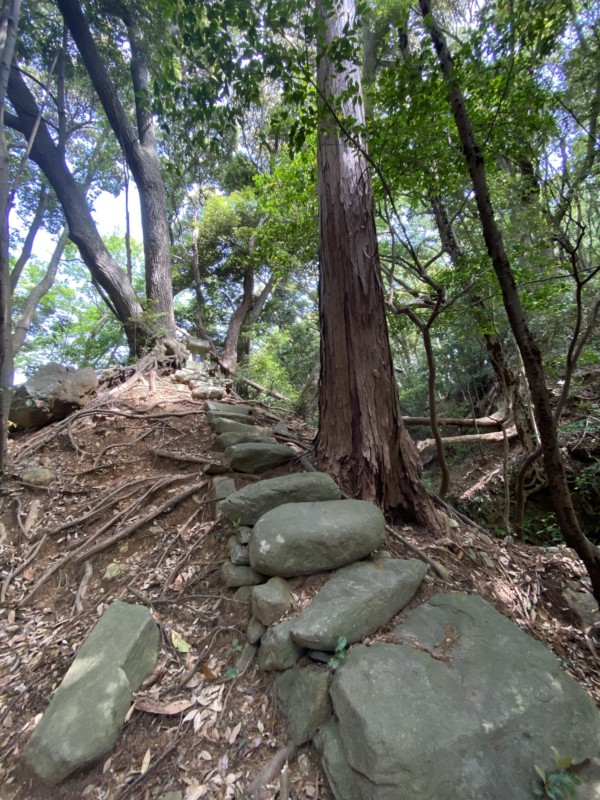 横を見るとこんな山奥に石垣がたくさん(;゚Д゚)