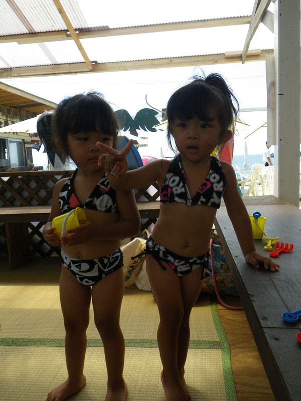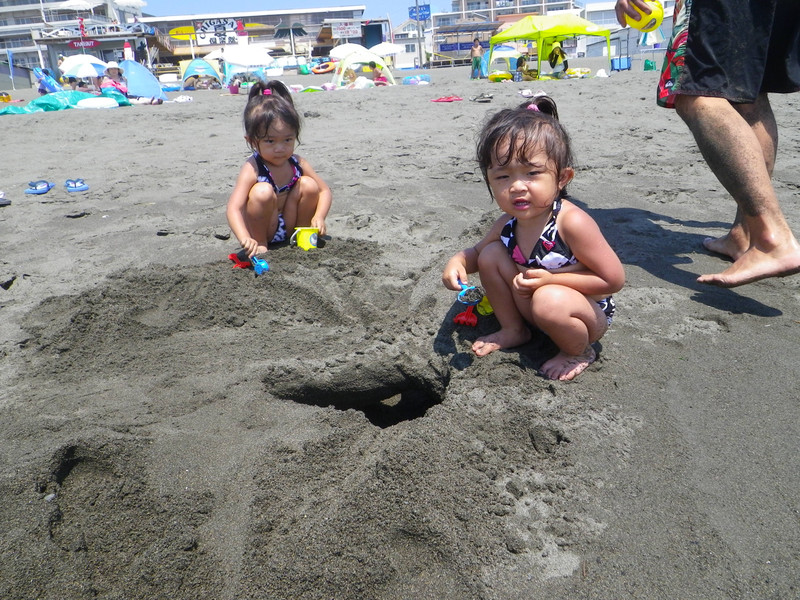 ふたごっち一年ぶりの海~~~~